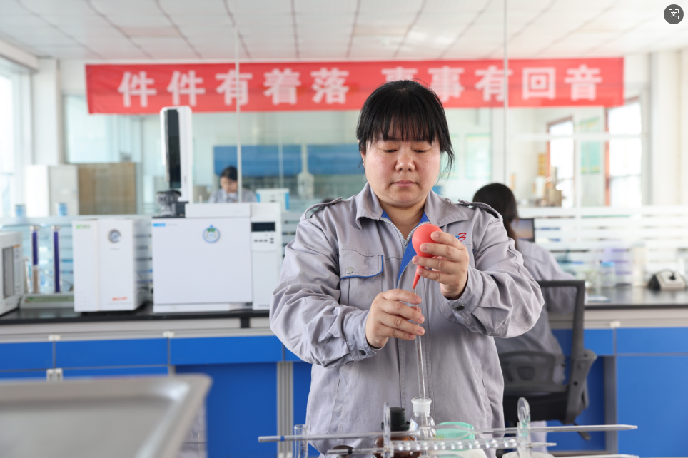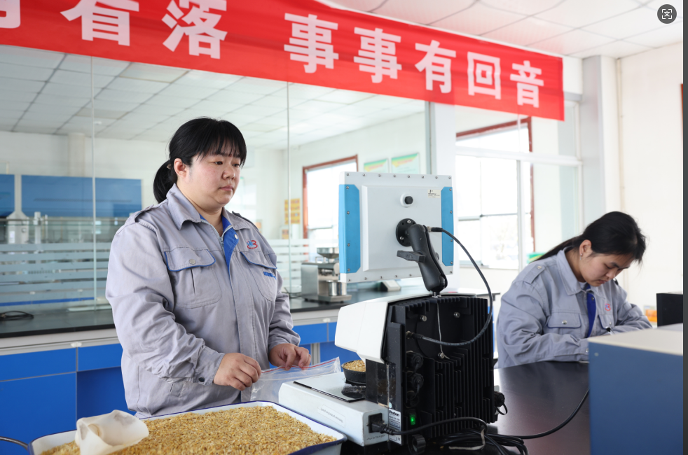 每天清晨,白宗英总是最早到达质检科室,准备好一天的检测工具与记录表格。对于玉米胚芽的质检,她如同一位严苛的“选美评委”。检测台上,她熟练操作设备仪器,精准获取玉米胚芽中的水分含量、含油率等指标数据,通过专业的萃取与计算,确保每一批次的玉米胚芽都能为优质油品的产出奠定基础。